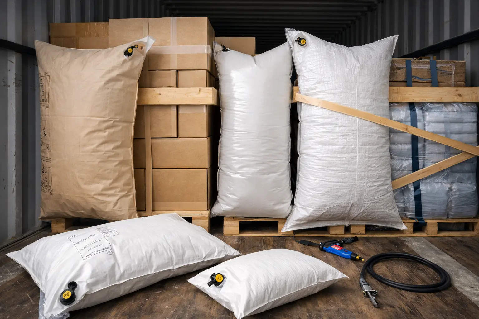 Dunnage bags also called air bags or cargo bags are inflatable pouches stuffed into gaps between cargo inside trucks, rail cars, shipping containers, and ocean vessels. Once inflated, they jam everything tight so cargo can’t shift during transit.